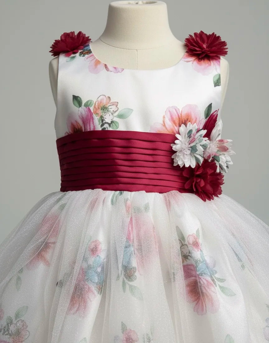 Enchanting Floral Print Girls' Party Dress